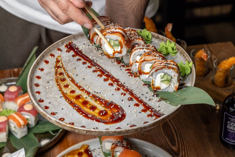 Сыр Сливочный, Огурец, Угорь, соус Унаги, Кунжут.